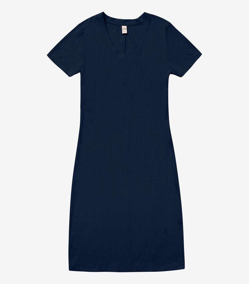Vestido Feminino Em Ribana Canelada Rovitex Azul
