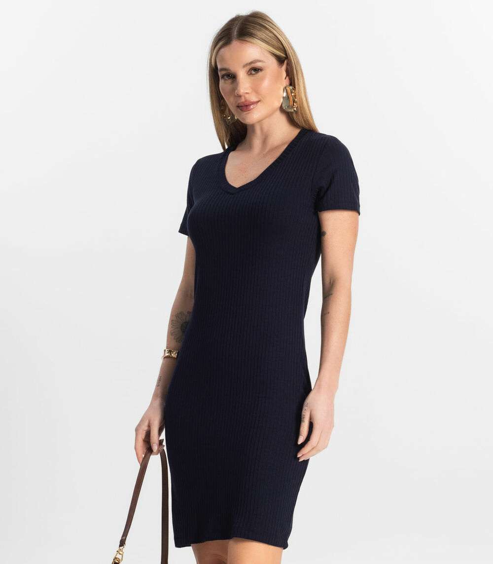 Vestido Feminino Em Ribana Canelada Rovitex Azul