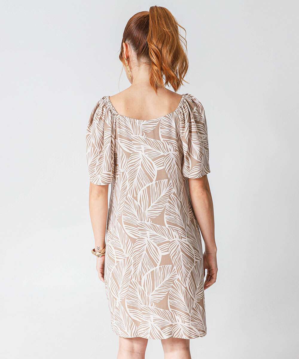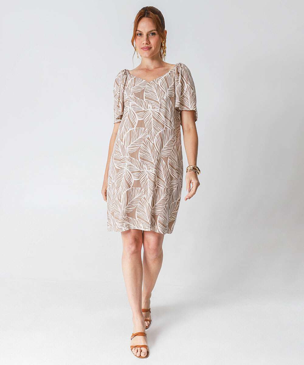 Vestido Feminino Estampa Folhas Manga Curta Marisa Marrom