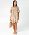 Vestido Feminino Folhas Manga Curta Marisa Marrom