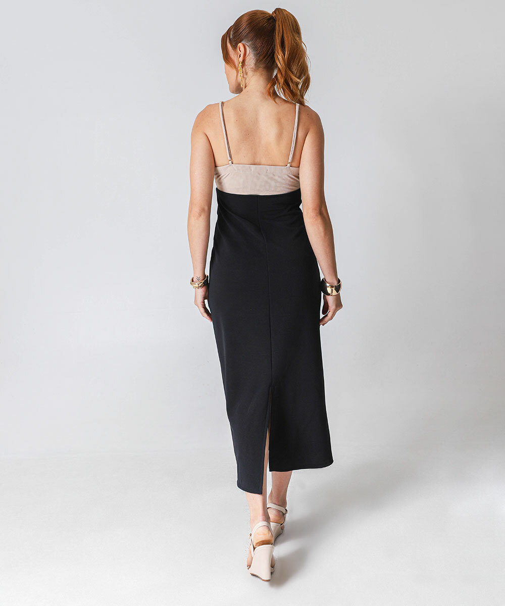 Vestido Feminino Midi Bicolor Alças Finas Marisa Preto