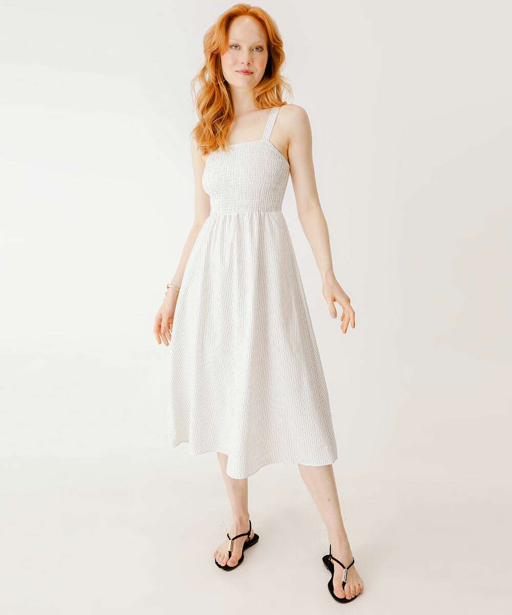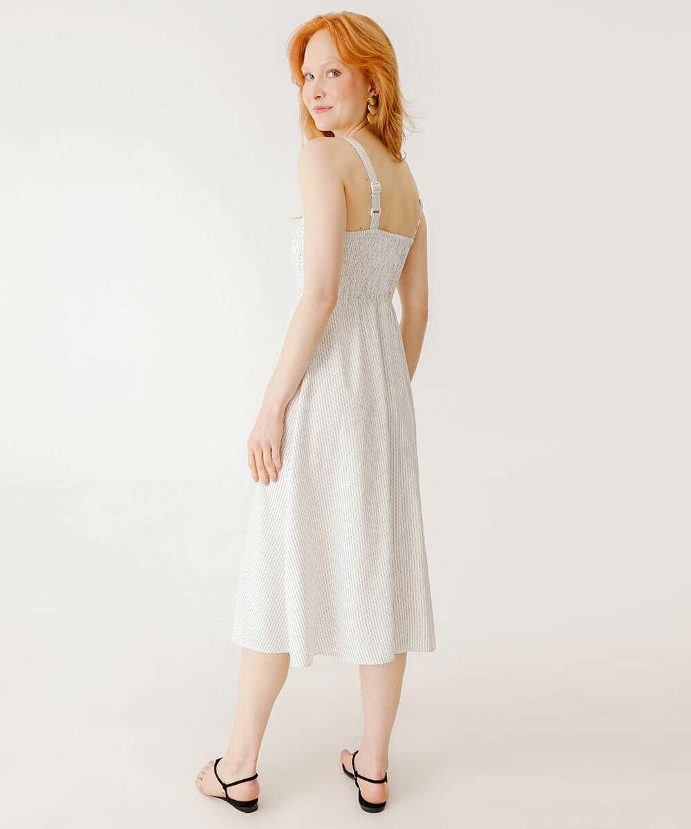 Vestido Feminino Midi Lastex Listras Marisa Branco