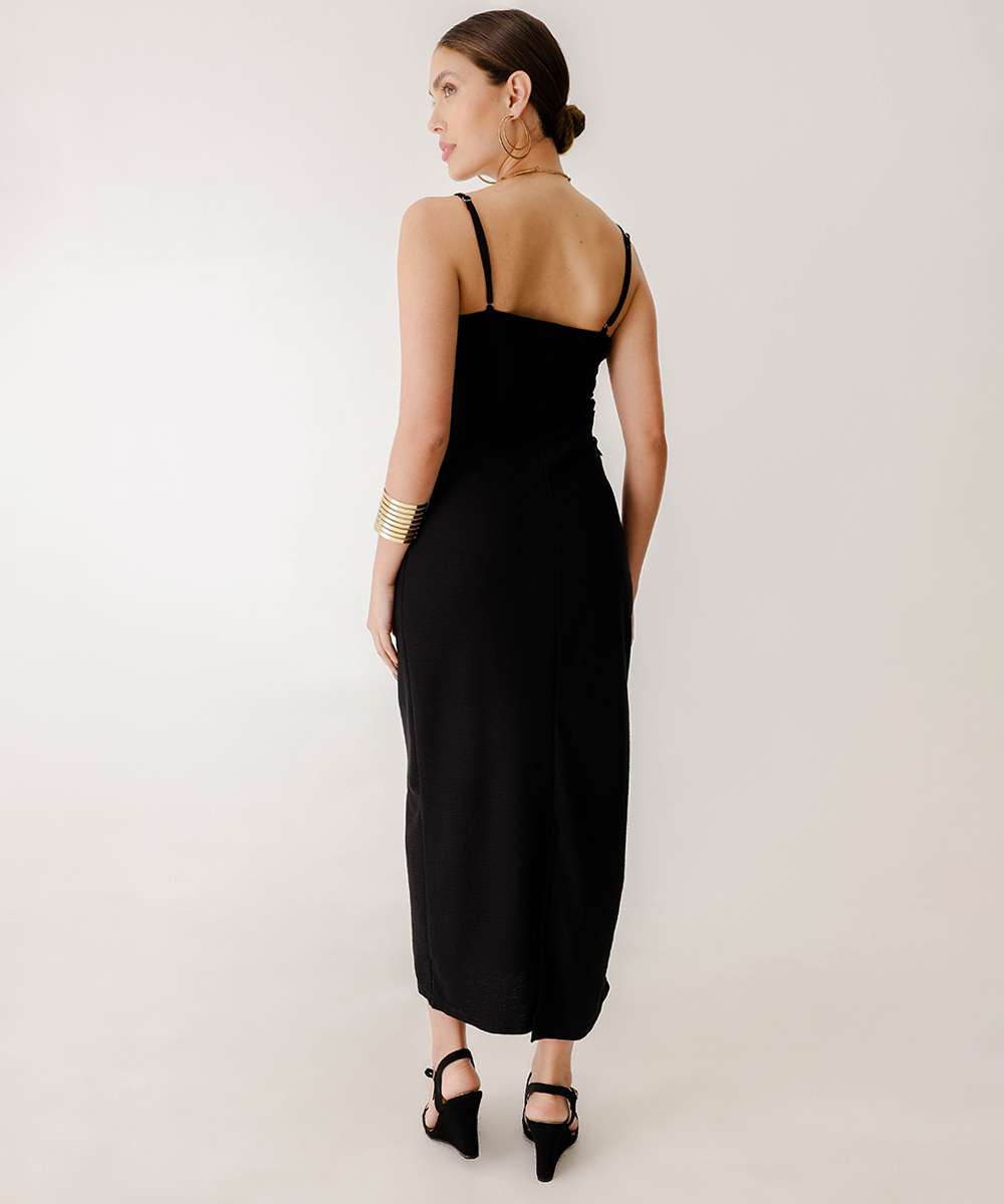 Vestido Feminino Midi Recorte Renda Alças Finas Marisa