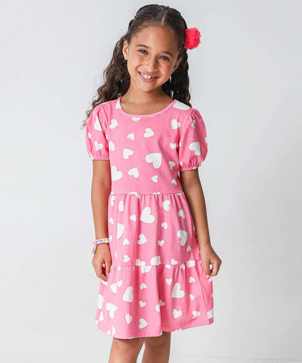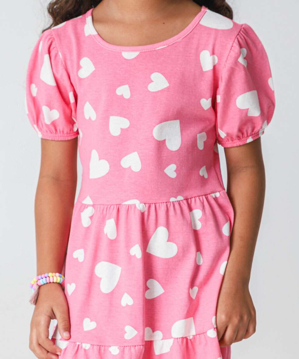 Vestido Infantil Corações Manga Bufante Marisa Tam 4 a 10 Rosa