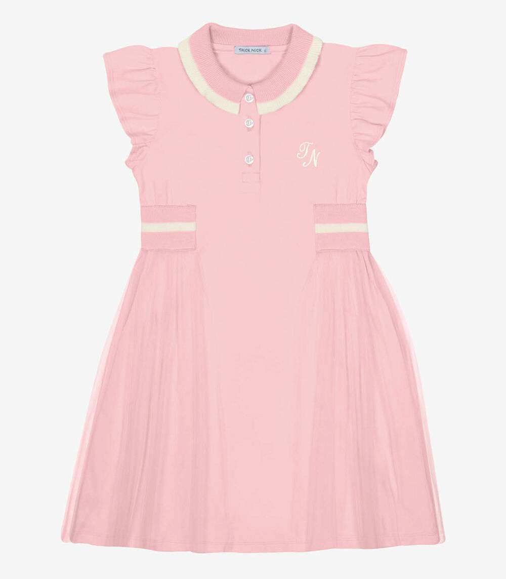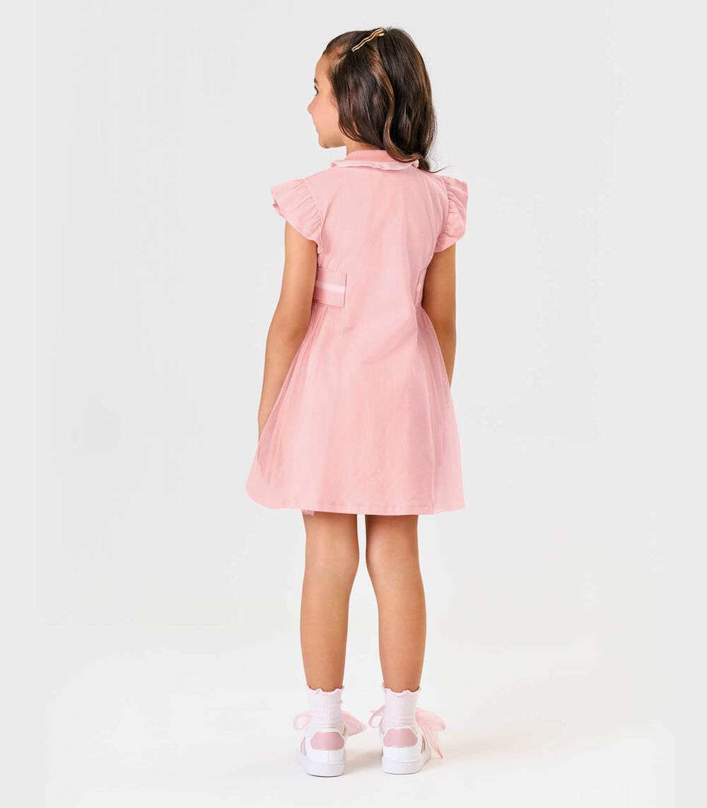 Vestido Infantil Cotton Com Tule Trick Nick Rosa