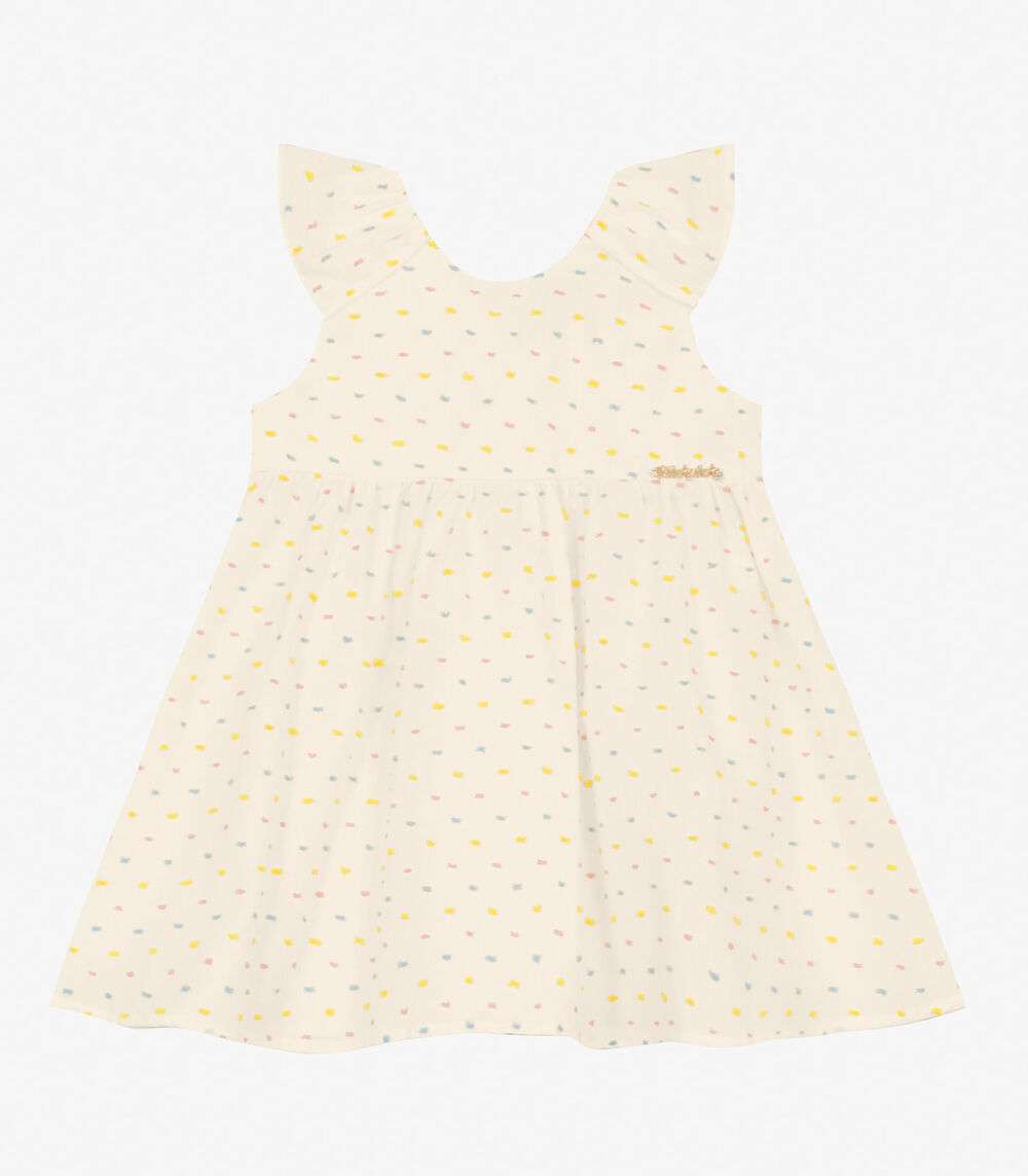Vestido Infantil em Cotton Plumetis Trick Nick Bege