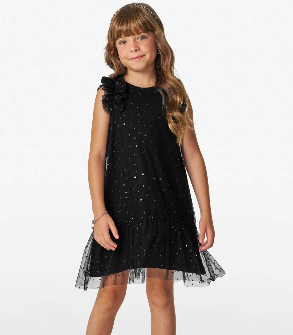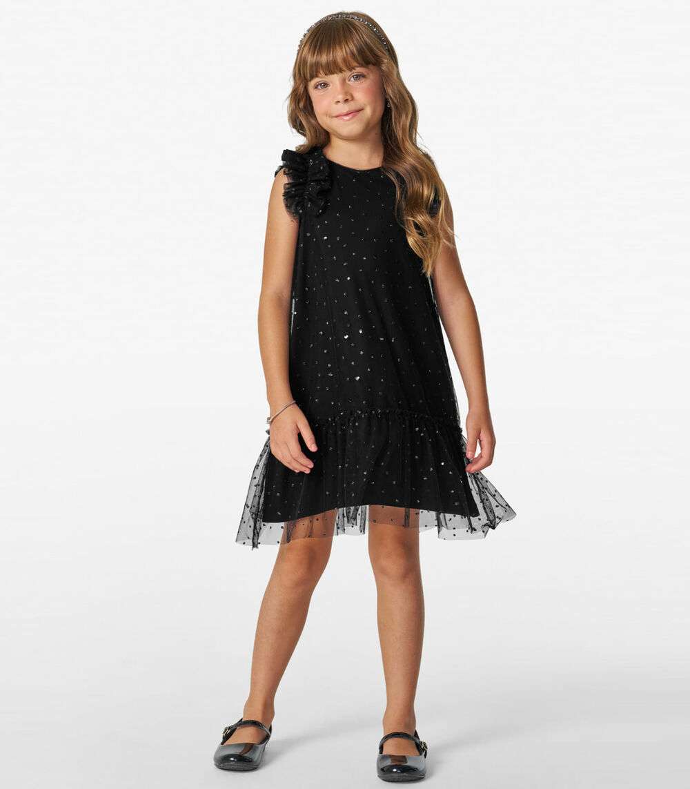 Vestido Infantil em Tule Lantejoulas Trick Nick Preto