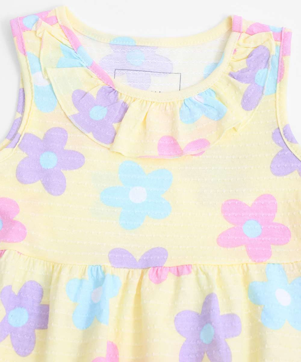 Vestido Infantil Estampa Flores Marisa Tam 1 a 3 Amarelo