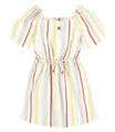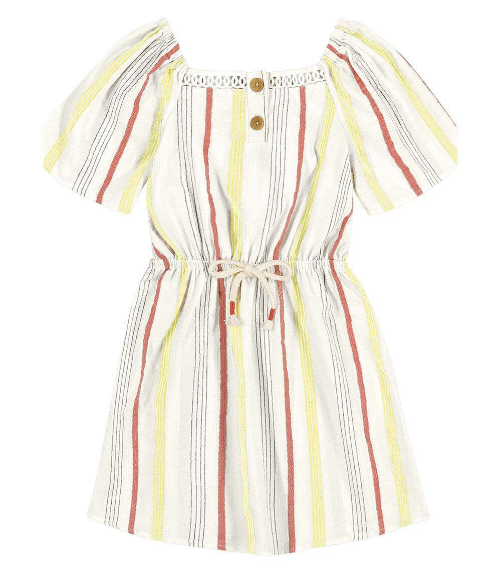 Vestido Infantil Feminino desenvolvido em Cambraia. Possui mangas soltinha, com elástico no ombro, detalhe de botões, elástico na cintura e cadarço para amarração. Peça leve e fresquinha, ideal para brincar muito em dias quentes! Combine com: sandálias e acessórios.