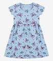 Vestido Infantil Manga Curta Estampado Biju Kids Azul