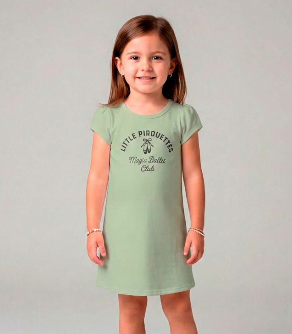 Vestido Infantil Manga Curta Estampado Select Verde