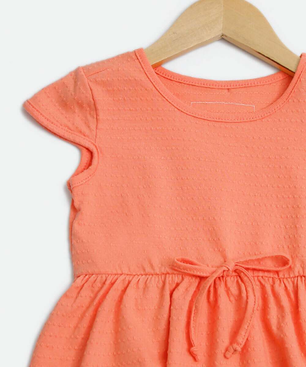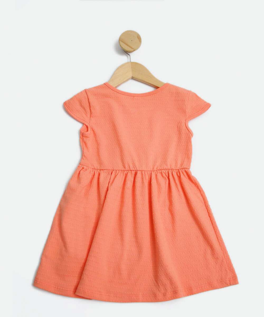 Vestido infantil, ideal para meninas de 01 até 04 anos de idade, confeccionada em malha algodão com textura. Possui decote redondo, manga curta, elástico na cintura para melhor ajuste ao corpo, tiras amarração decorativa, acabamento e costura no tom.