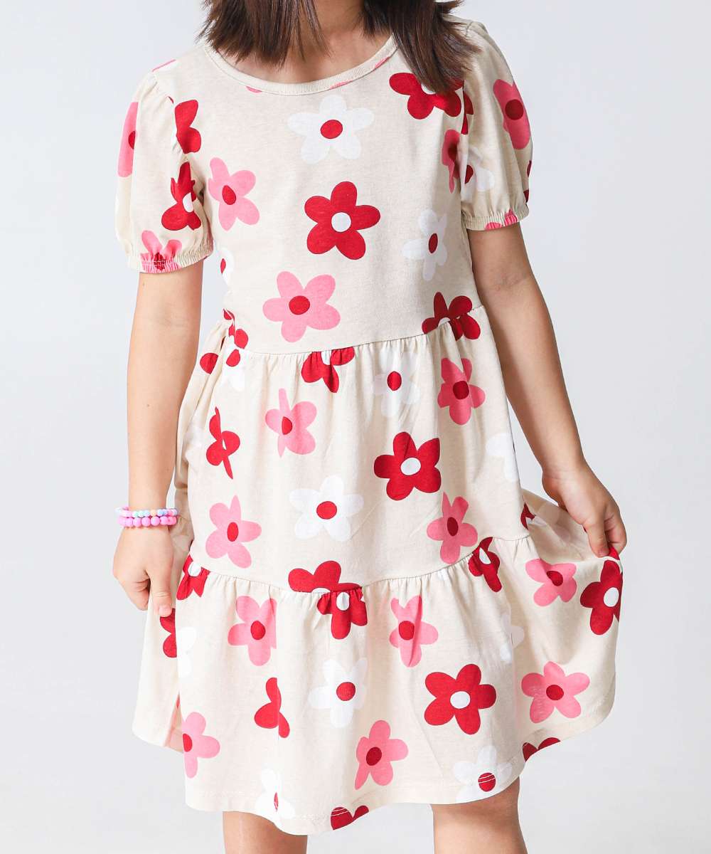 Vestido Infantil Margarida Manga Bufante Bege Marisa Tam 4 a 10