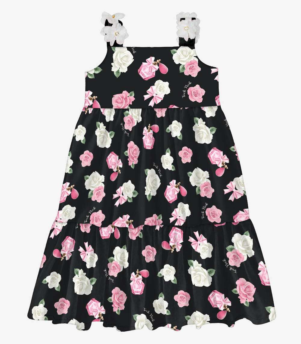 Vestido Infantil Midi Estampado Trick Nick Preto