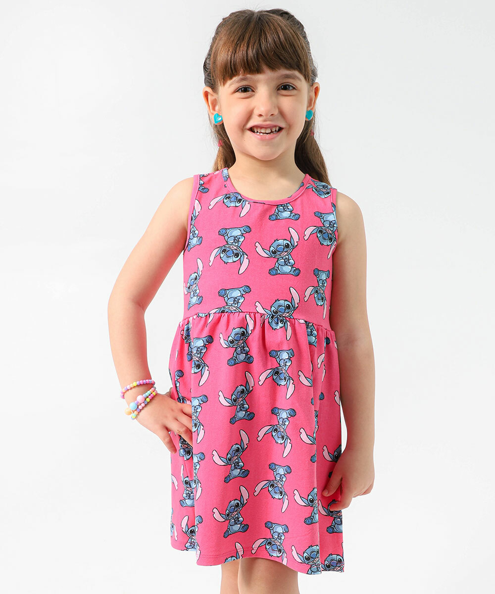 Vestido Infantil Stitch Disney Tam 4 a 10 Rosa