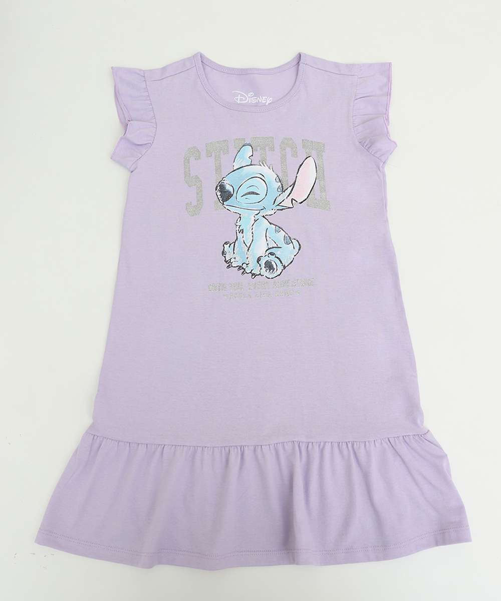 Vestido Infantil Stitch Disney Tam 4 a 10 Roxo