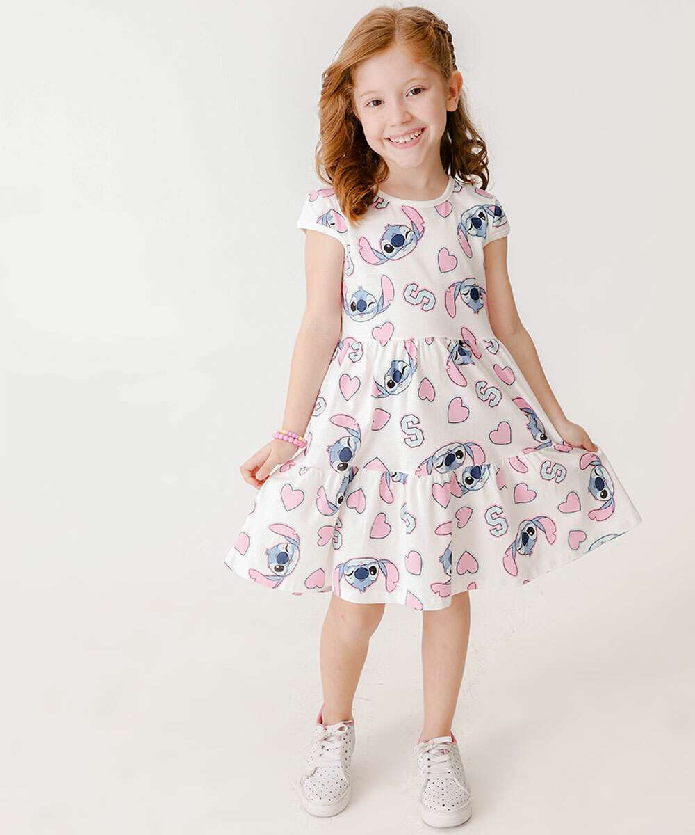 Vestido Infantil Stitch Manga Curta Disney Tam 4 a 10