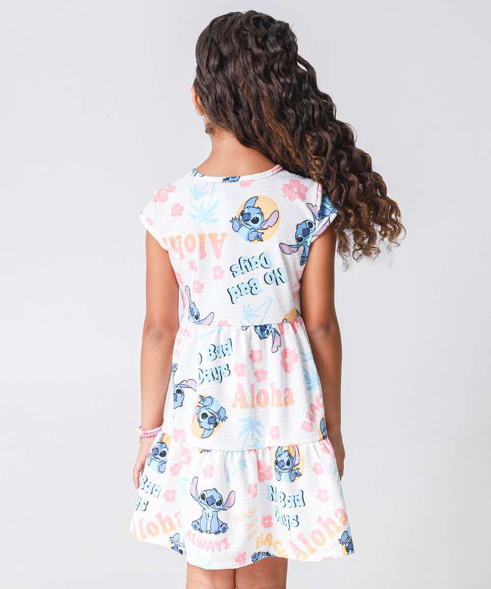 Vestido Infantil Stitch Manga Curta Disney Tam 4 a 10
