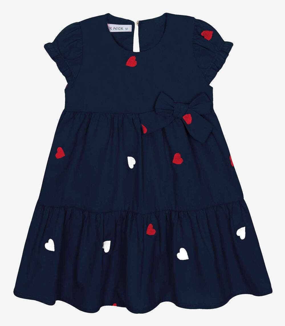 Vestido Infantil Tricoline Corações Trick Nick Azul
