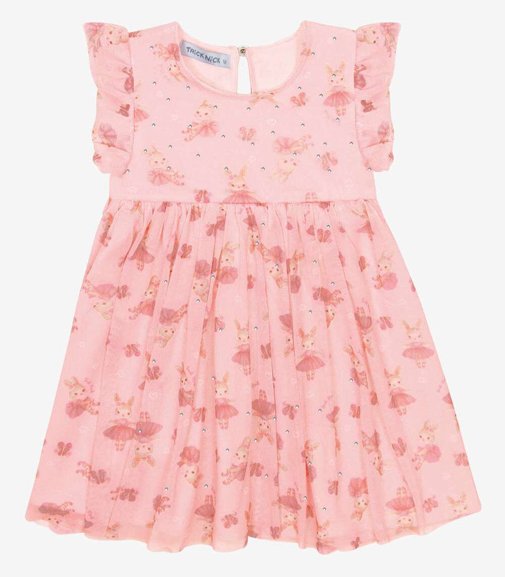 Vestido Infantil Tule Com Strass Trick Nick Rosa