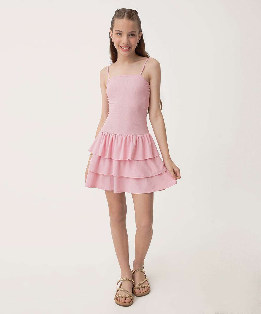 Vestido Juvenil Alças Finas Babado Marisa Tam 10 a 16 Rosa