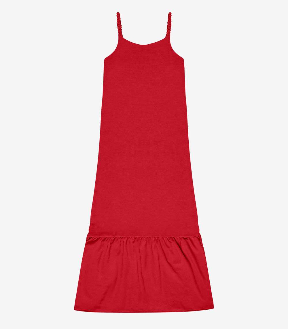 Vestido Longo Com Babado Rovitex Vermelho