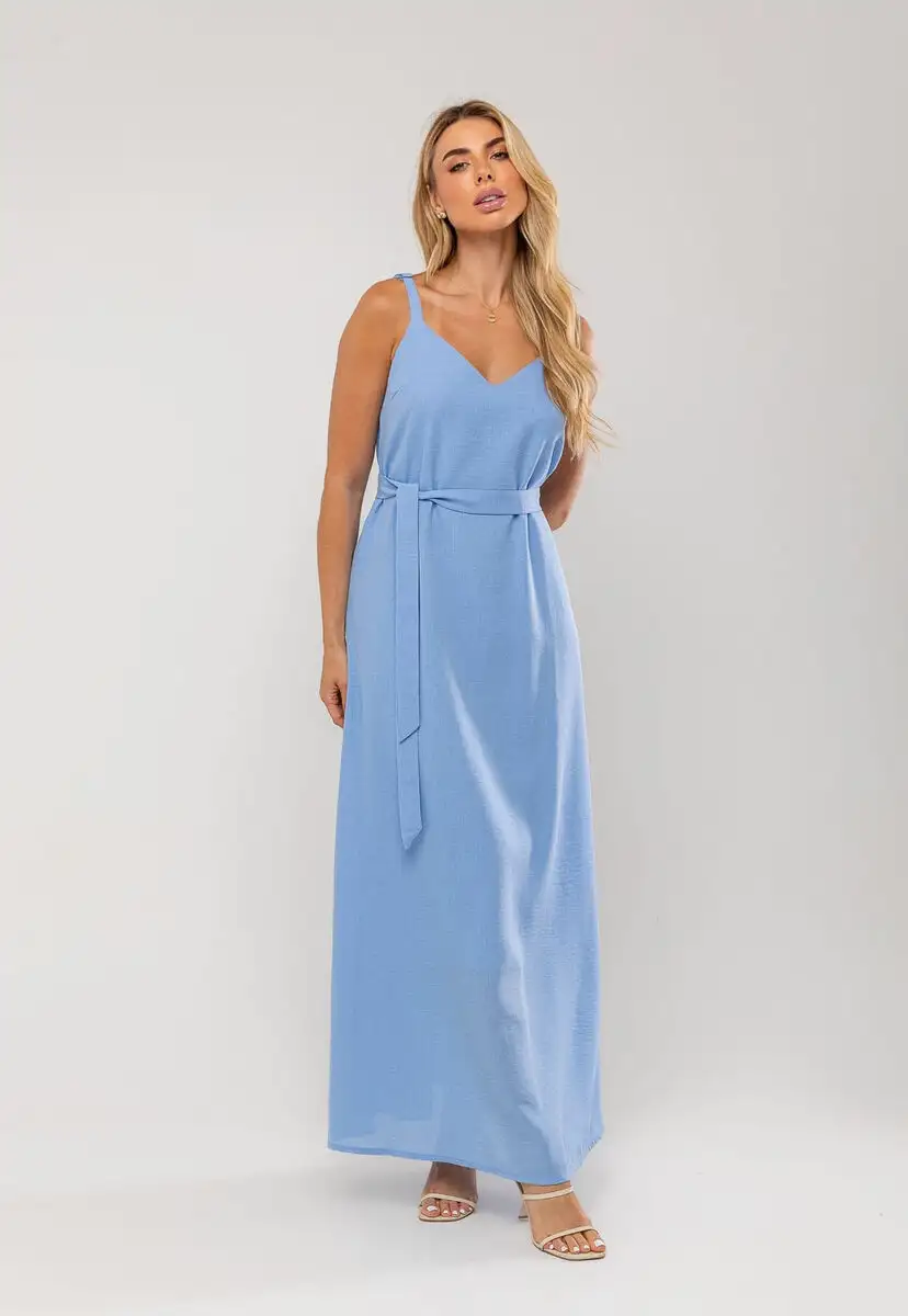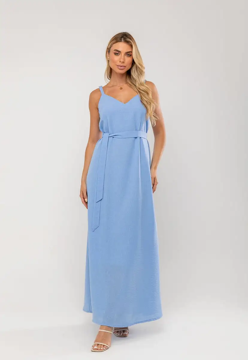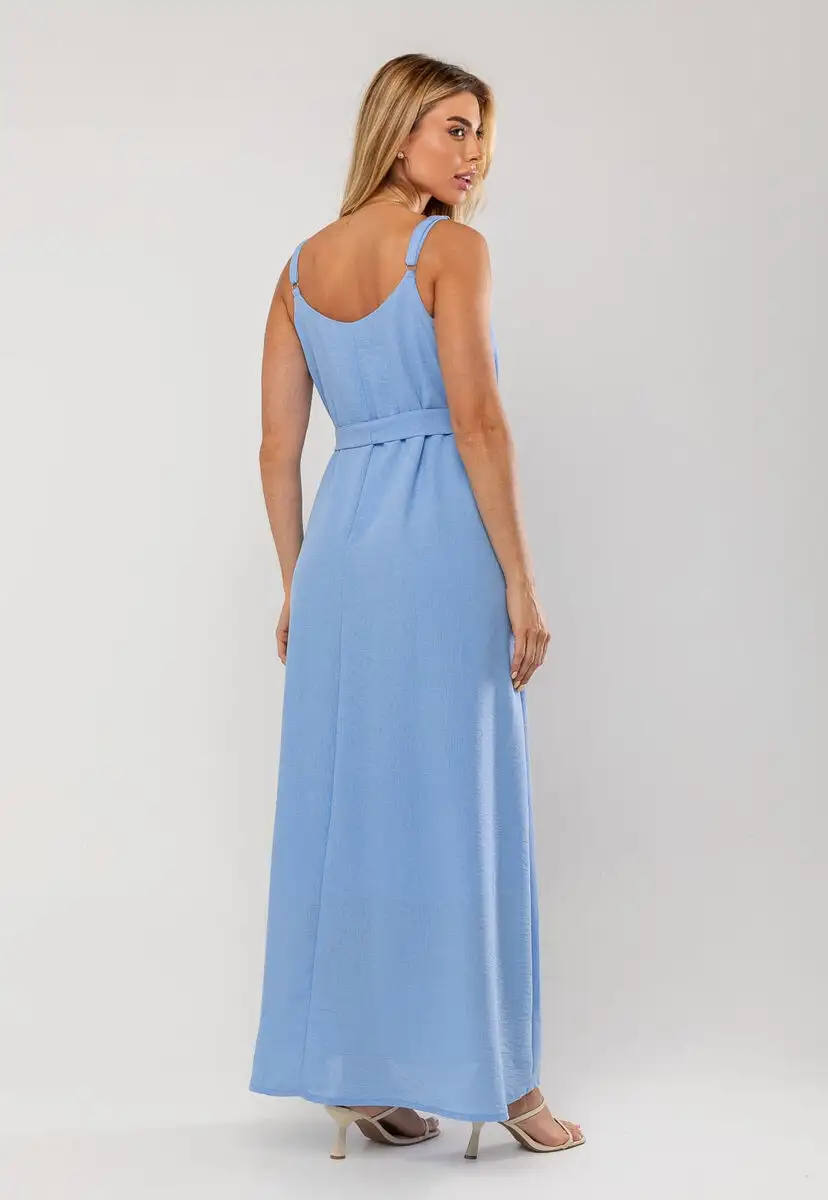 O vestido longo é sinônimo de leveza, elegância e conforto. Ele possui forro interno que garante segurança e um caimento impecável, além de alças com regulagem, permitindo o ajuste perfeito ao corpo.Com decote em V e faixa para amarração na cintura, o modelo valoriza a silhueta de forma sutil e feminina. Seu comprimento longo traz um toque de sofisticação, enquanto o tecido leve proporciona movimento e frescor, ideal para dias quentes ou eventos ao ar livre.Transmite serenidade e delicadeza, sendo uma excelente escolha para compor produções casuais ou mais elegantes, basta variar os acessórios e o calçado. • Possui forro interno • Alças com regulagem • Decote em V • Faixa para amarração na cintura Modelo veste tamanho P. Medidas da modelo: Altura 1,73cm | Busto 86cm | Cintura 67cm | Quadril 99cm Composição: 100% Poliéster. Forro: 100% Poliéster.