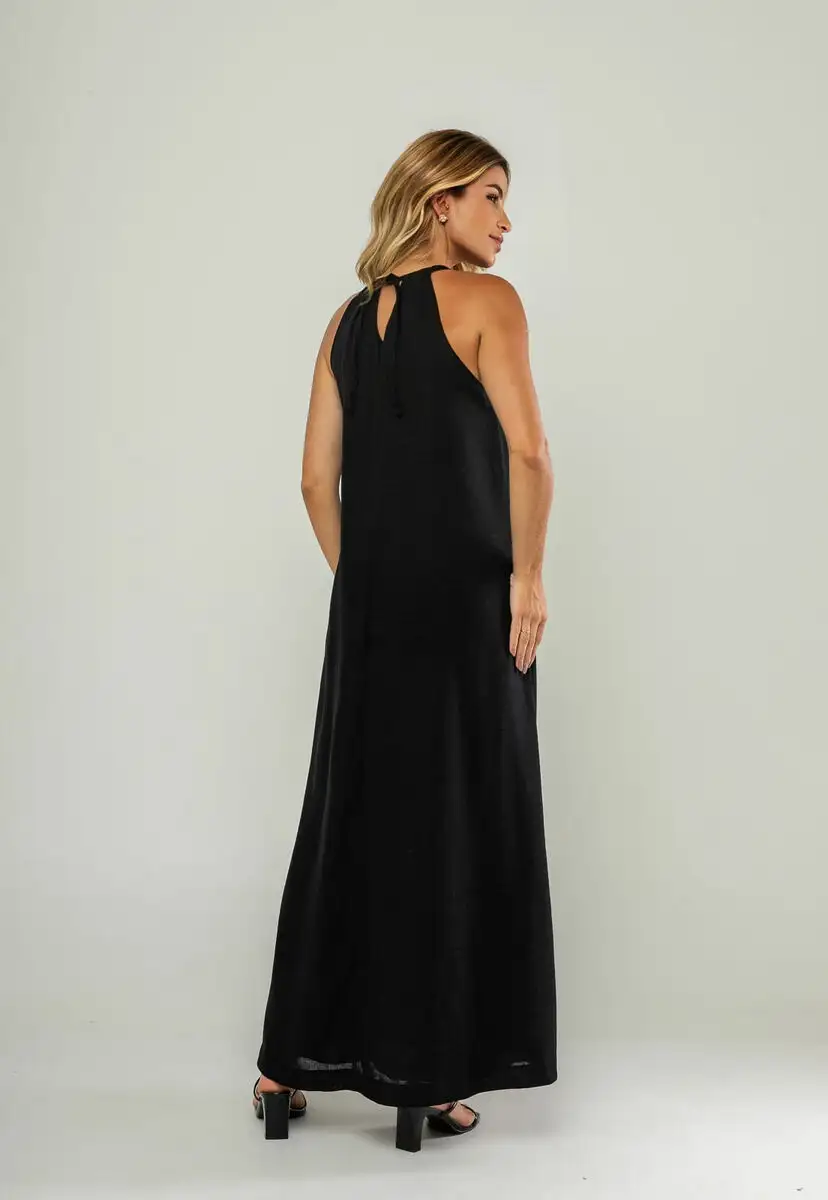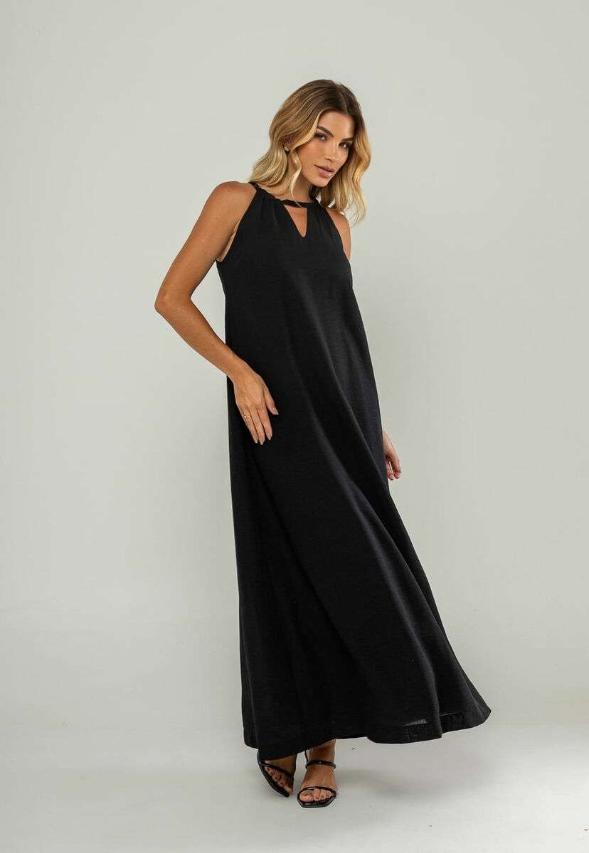O vestido longo com decote em V e amarração é a peça ideal para quem busca um visual sofisticado, leve e atemporal. Com modelagem ampla e fluida, ele oferece movimento natural e conforto extremo, sendo perfeito para ocasiões especiais, passeios, viagens ou para compor produções elegantes com praticidade.O modelo conta com um decote moderno, que traz um recorte delicado e amarração superior, adicionando personalidade e charme ao look. As alças largas garantem sustentação e um vestir confortável. Para maior segurança, o vestido possui forro interno, garantindo um caimento impecável sem marcar o corpo.Confeccionado em tecido leve e de toque macio, ele proporciona frescor e elegância em qualquer momento do dia, combinando facilmente com sandálias, rasteiras ou saltos. • Modelagem ampla e fluida • Decote com recorte e amarração • Alças largas • Possui forro interno Modelo veste tamanho P. Medidas da modelo: Altura 1,73cm | Busto 86cm | Cintura 67cm | Quadril 99cm Composição: 100% Poliéster. Forro: 100% Poliéster.