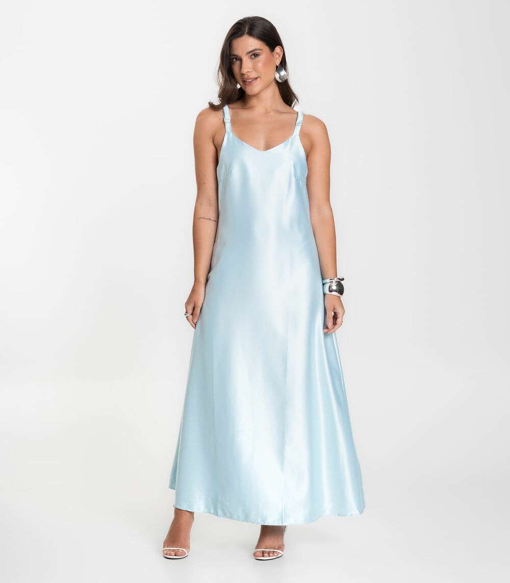 Vestido Longo Feminino De Cetim E Alcinha Select Azul