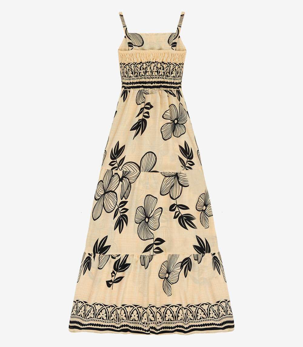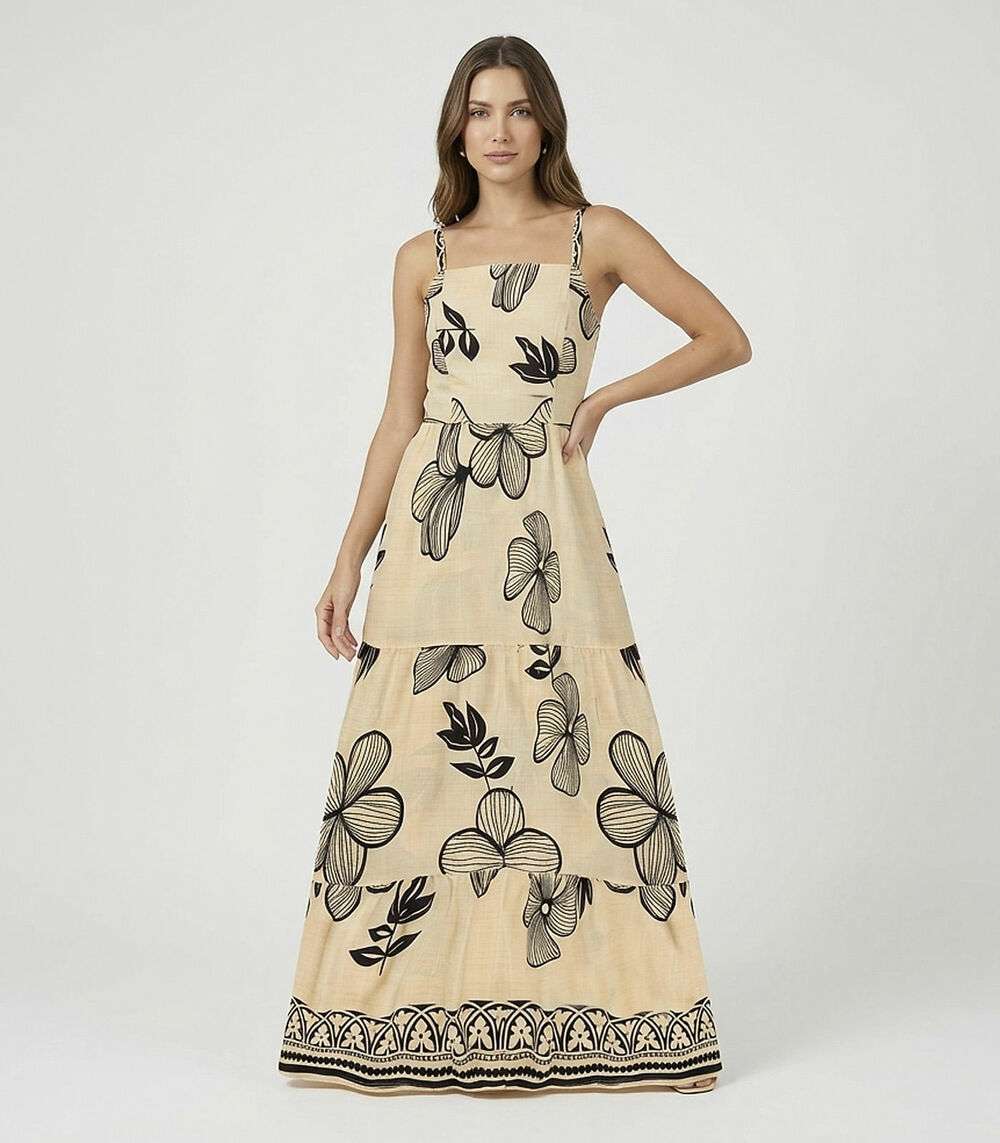 Vestido Longo Feminino Lastex Estampado Select Preto