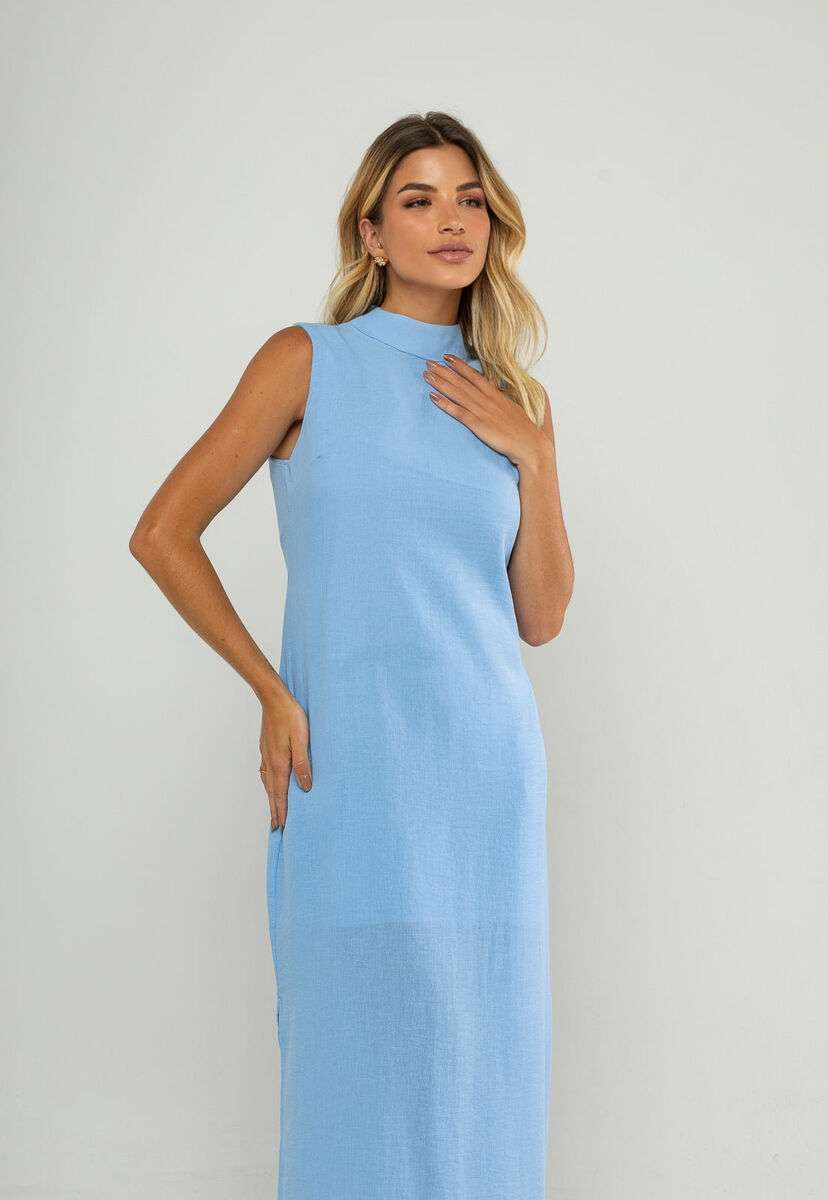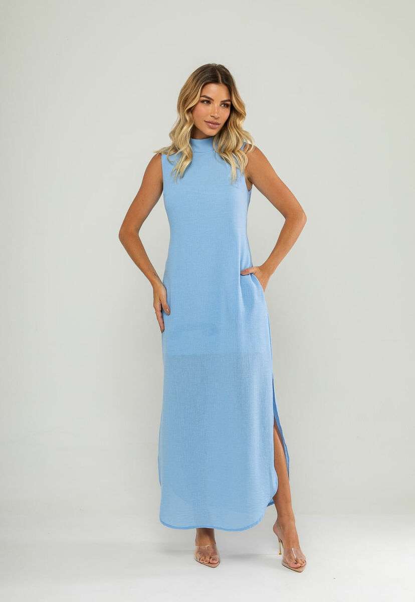 O vestido longo feminino com gola alta combina elegância minimalista e conforto em uma peça moderna e versátil. Desenvolvido em tecido leve e com toque suave, ele oferece caimento fluido e sensação de frescor, ideal para dias quentes ou produções sofisticadas e descomplicadas. O modelo possui forro, garantindo segurança e conforto ao vestir.A modelagem reta e sem mangas traz um visual clean e atemporal, valorizando o corpo de forma natural. A gola alta estruturada adiciona personalidade e um toque contemporâneo ao look. As fendas laterais proporcionam movimento e leveza, deixando o visual ainda mais elegante e estiloso.Para maior praticidade, o vestido conta com bolsos laterais funcionais, perfeitos para o dia a dia. A peça é extremamente versátil e transita facilmente entre ocasiões casuais e produções mais elaboradas. • Possui forro • Modelagem reta • Gola alta estruturada • Fendas laterais que ampliam o movimento • Bolsos laterais funcionais Modelo veste tamanho P. Medidas da modelo: Altura 1,73cm | Busto 86cm | Cintura 67cm | Quadril 99cmComposição: 100% Poliéster. Forro: 100% Poliéster.