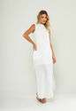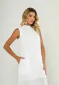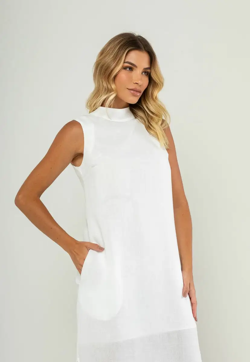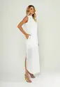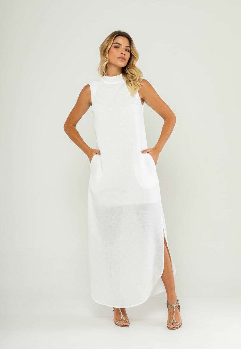 Vestido Longo Gola Alta E Fenda Lateral Branco Salvatore