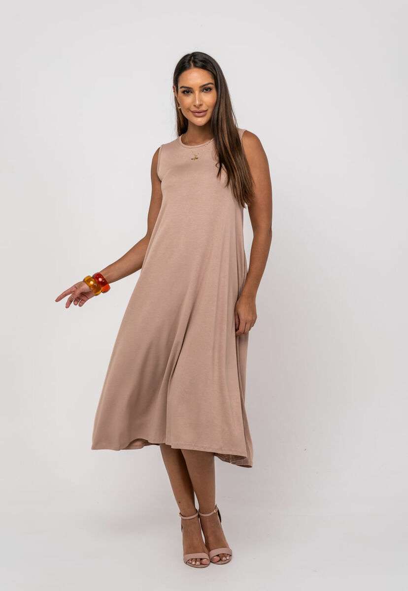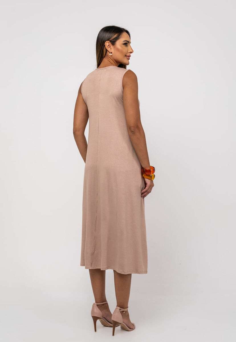 Vestido Longo Regata Com Bolsos Bege Salvatore
