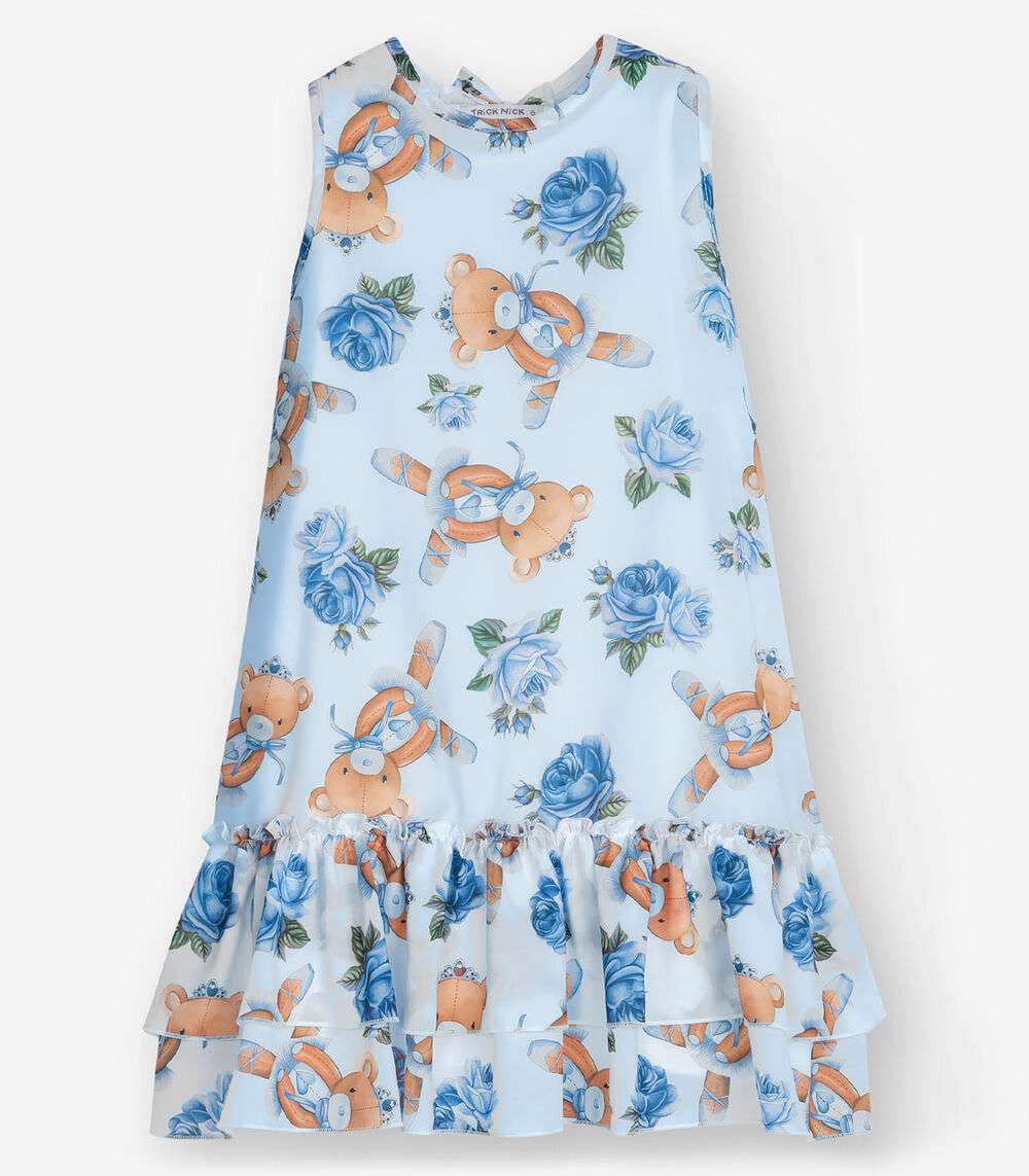 Vestido Meia Malha e Chiffon Trick Nick Azul