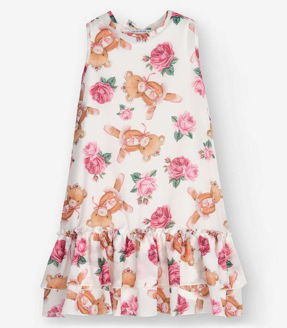 Vestido Meia Malha e Chiffon Trick Nick Bege