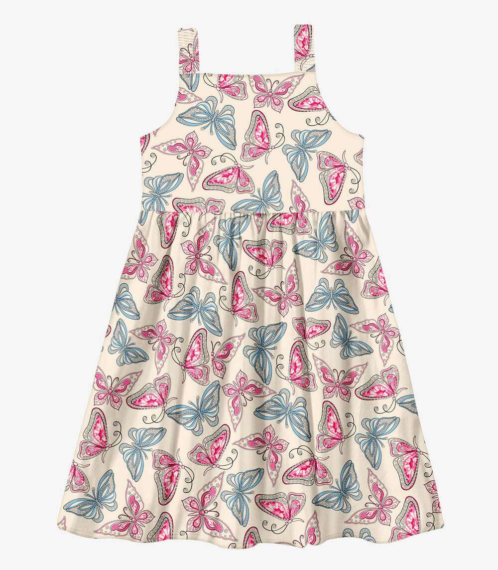 Vestido Menina Popeline Borboletas Trick Nick Bege