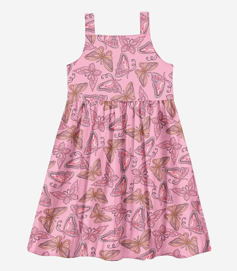 Vestido Menina Popeline Borboletas Trick Nick Rosa