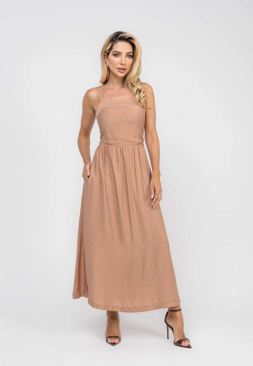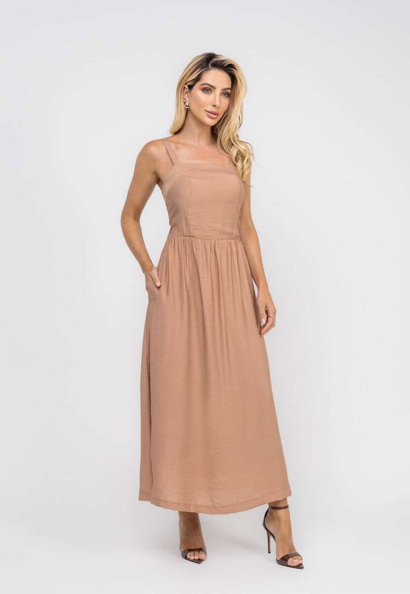 Vestido Midi Alfaiataria Bolsos Marrom Salvatore