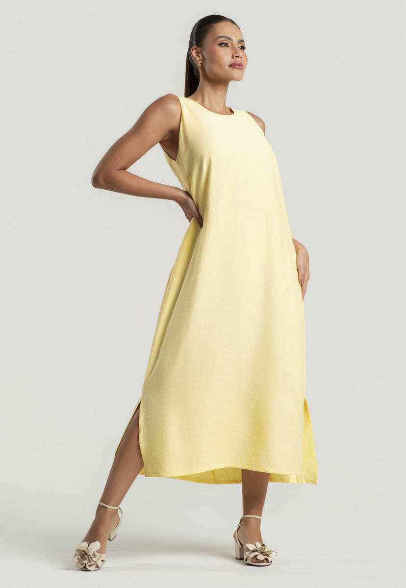 Refresque seus dias com o charme descontraído do vestido midi regata com fendas laterais e bolsos. Essa peça é a escolha ideal para quem busca leveza, praticidade e um toque moderno para os looks do dia a dia. Com caimento solto e tecido de alfaiataria marrant, ele é perfeito para os dias quentes, passeios ao ar livre, férias ou produções urbanas minimalistas.O design sem mangas aliado à modelagem reta proporciona liberdade de movimentos e muito frescor. Já as fendas laterais e os bolsos trazem um diferencial moderno e funcional, tornando o vestido ainda mais versátil e estiloso. Modelagem midi retaFendas laterais discretasBolsos lateraisModelagem regata Medidas da modelo: Altura 1,72cm | Busto 83cm | Cintura 63cm | Quadril 97cm | Manequim 38Modelo veste P Composição: 90% Viscose, 10% Poliéster.