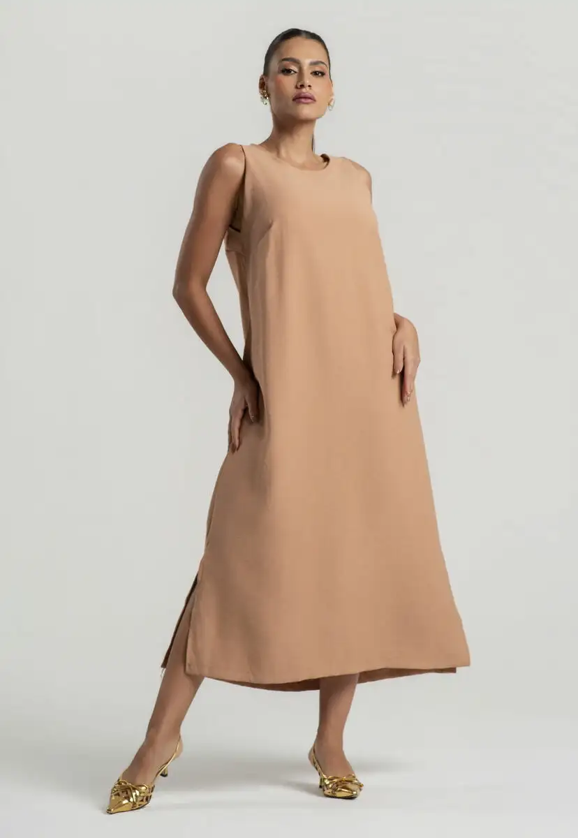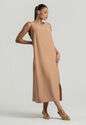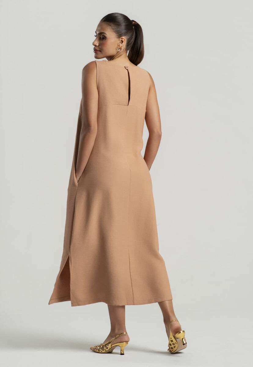 Vestido Midi Alfaiataria Marrant Regata Com Fendas e Bolsos Bege Salvatore