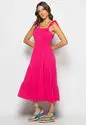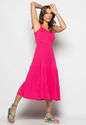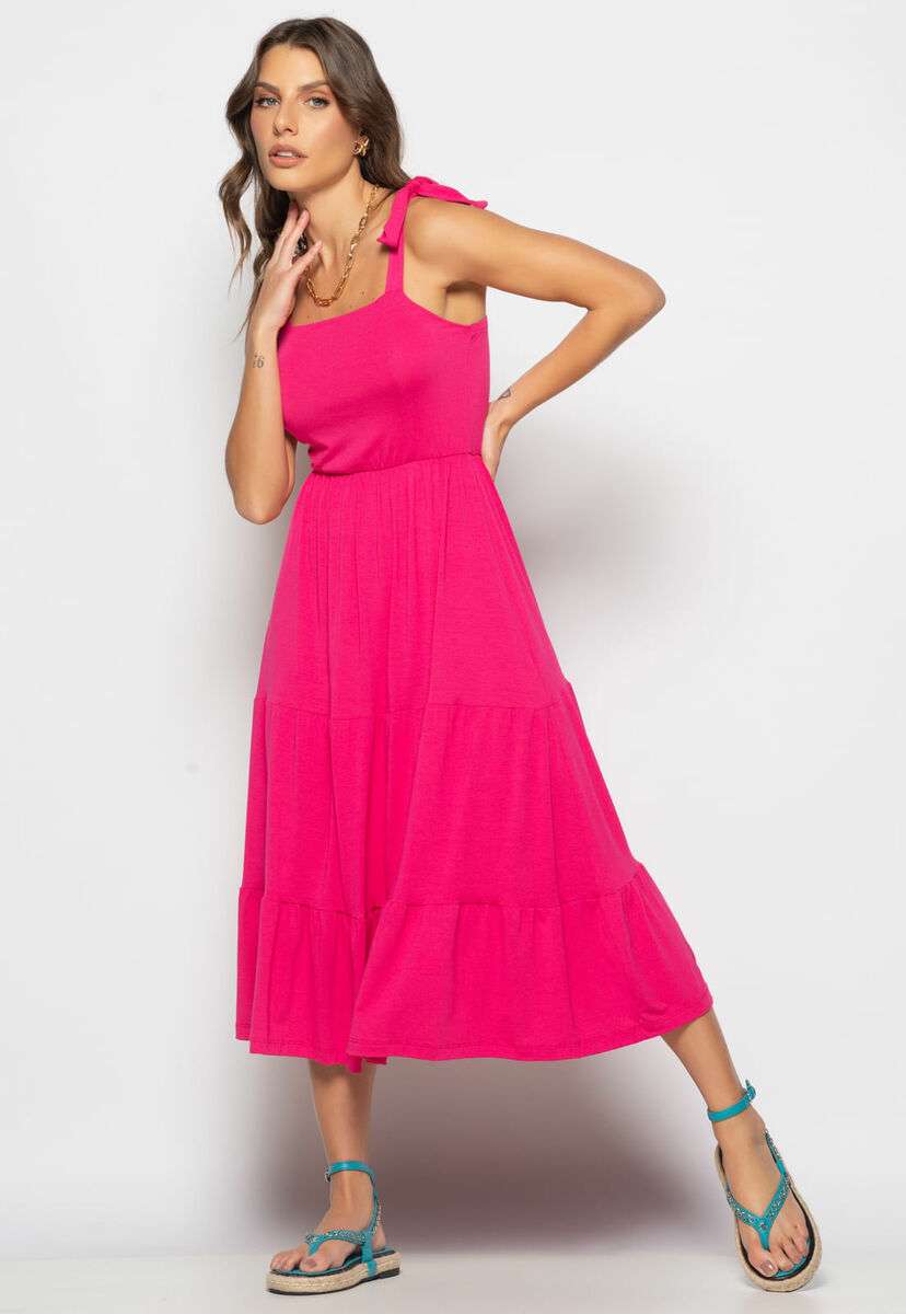 Vestido Midi Babado Com Alça Amarração Malha Rosa Salvatore
