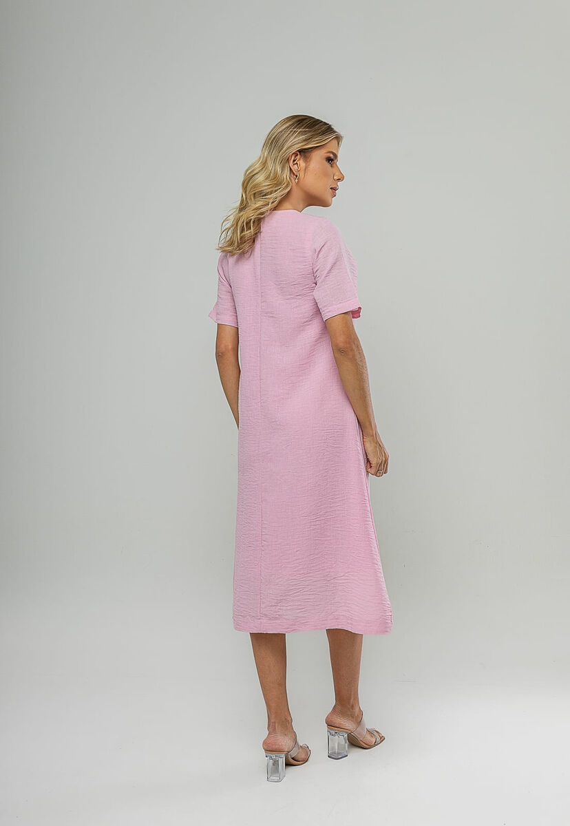Vestido Midi Botões Frontais Rosa Salvatore