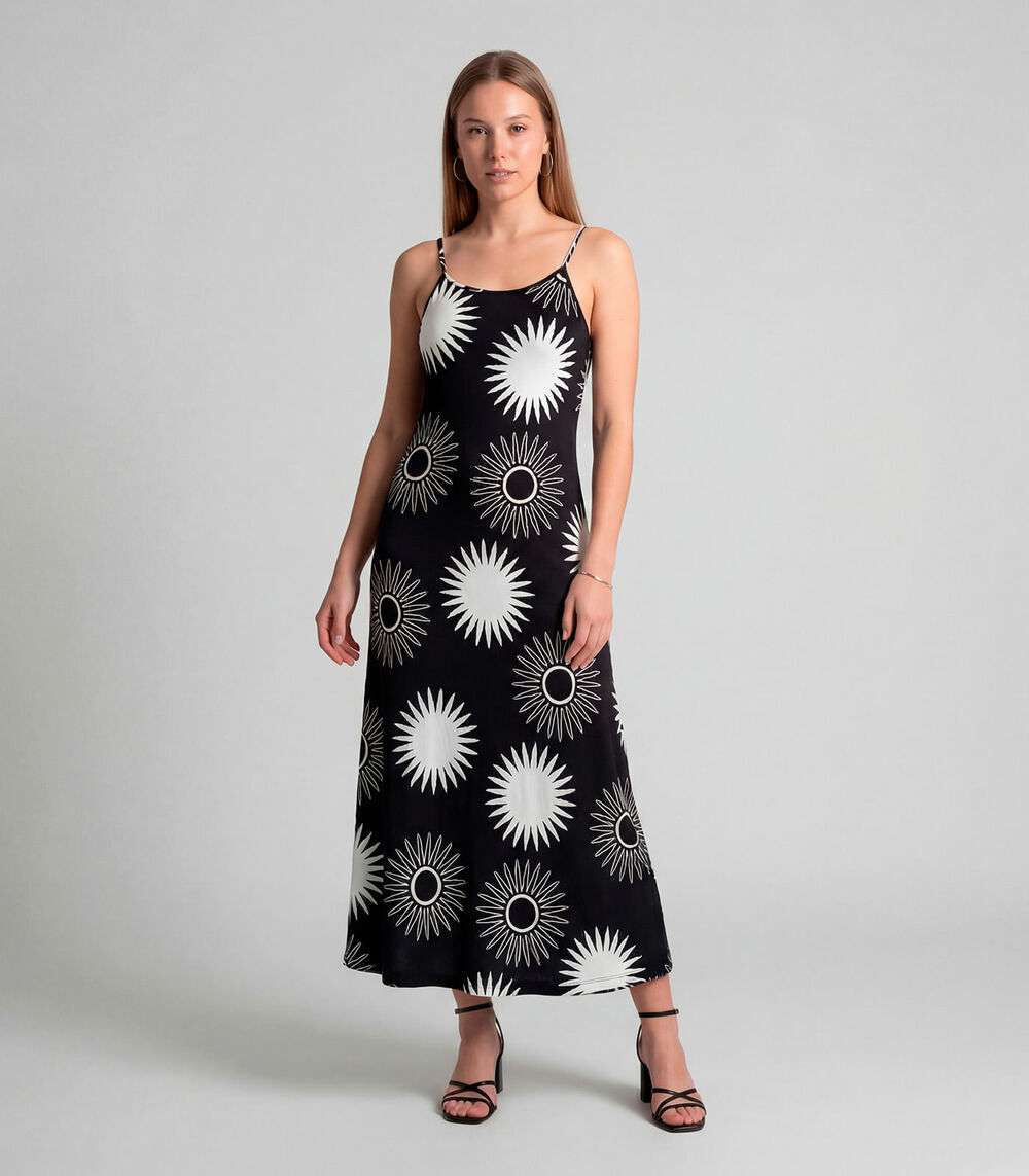 Vestido Midi Com Alças Finas Infinita Cor Preto