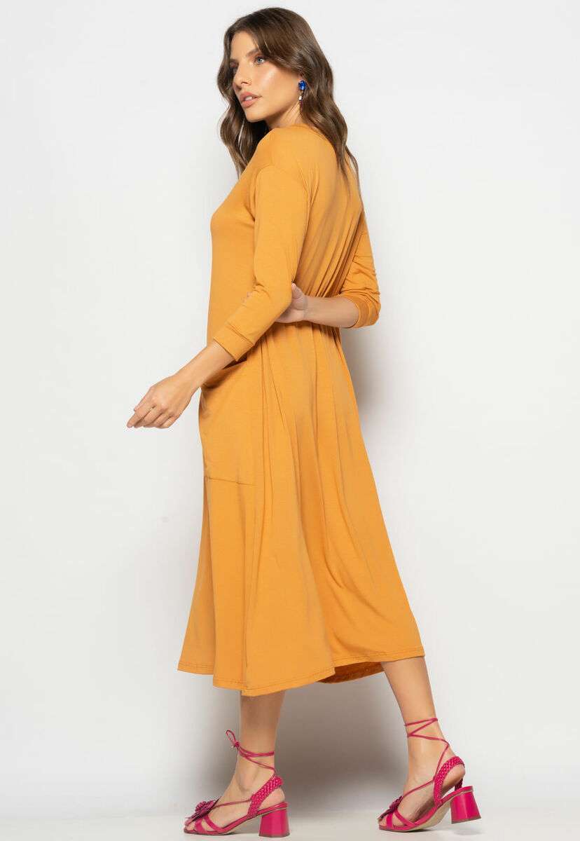Vestido Midi Com Bolsos E Manga 7/8 Caramelo Salvatore