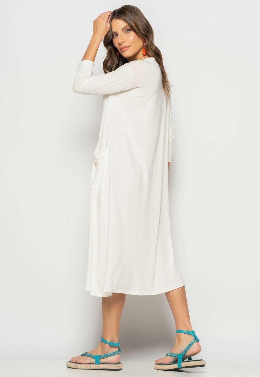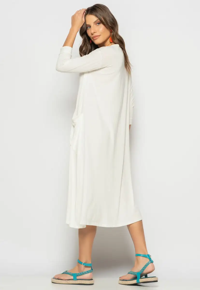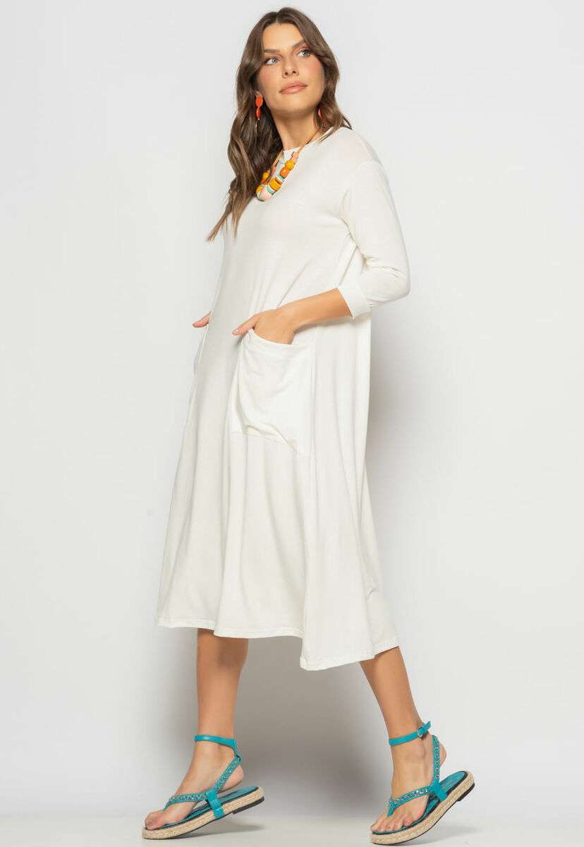 Vestido Midi Com Bolsos E Manga 7/8 Marfim Salvatore