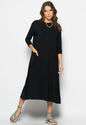 Vestido Midi Com Bolsos E Manga 7/8 Preto Salvatore