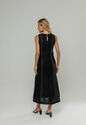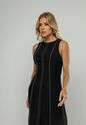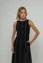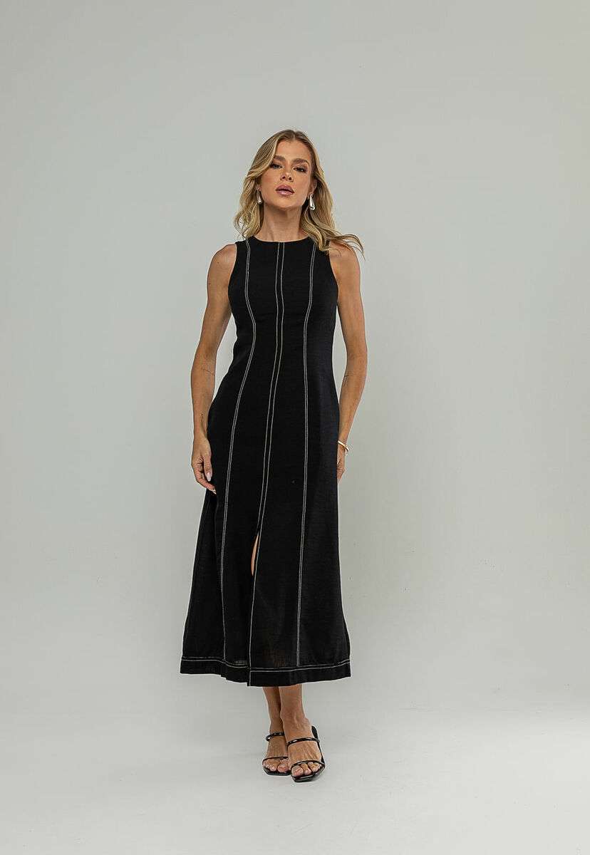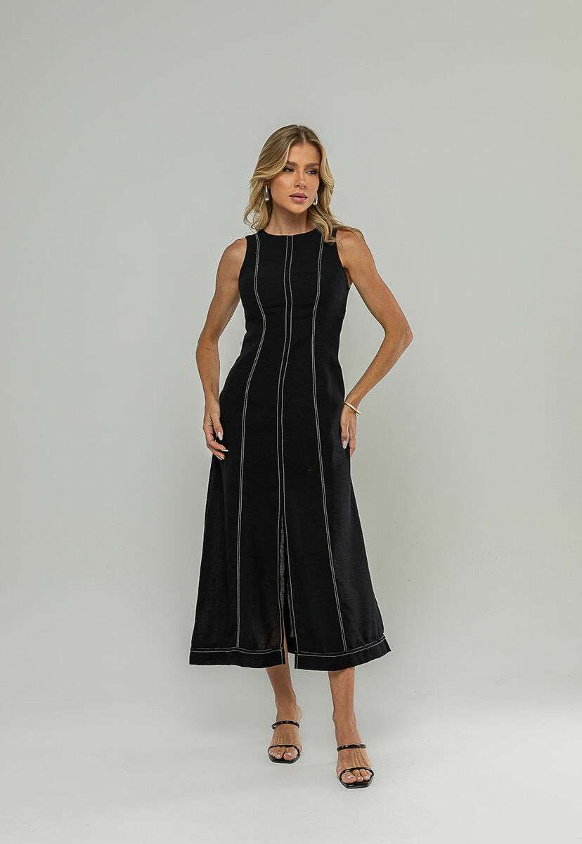 Vestido Midi Com Fenda Frontal E Costura Contrastante Preto Salvatore