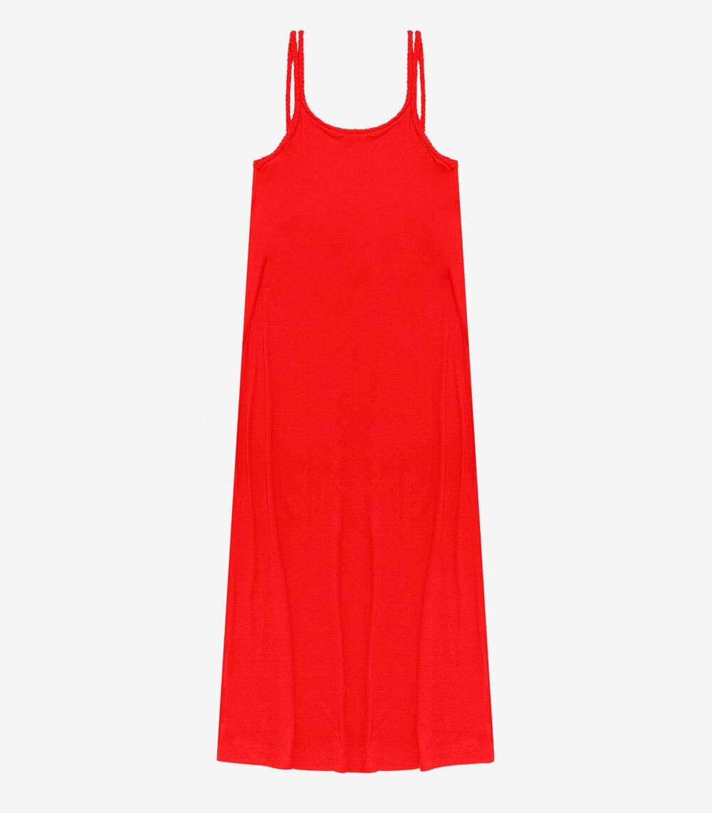 Vestido Midi de Alça em Visco Maquinetada Endless Laranja
