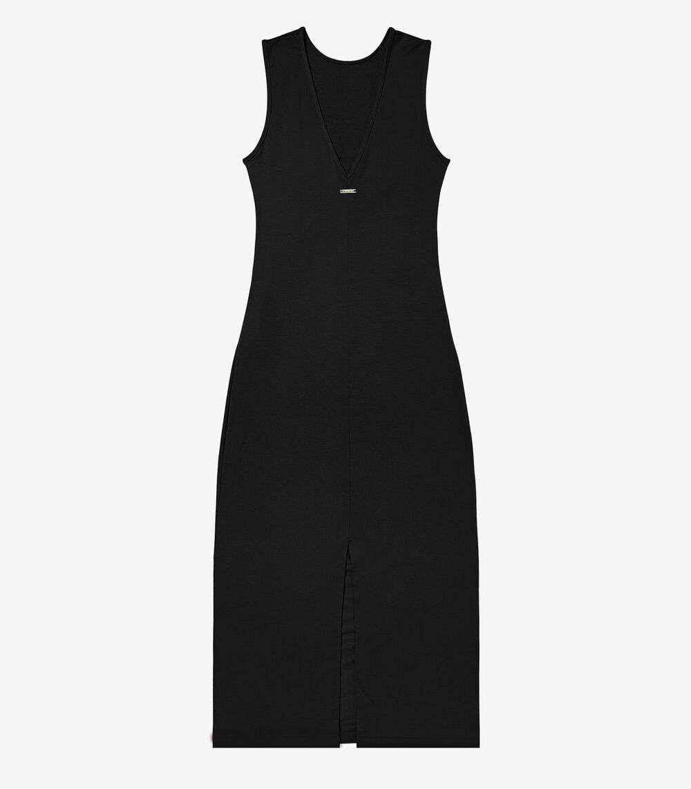 Vestido Midi em Molecotton de Viscose Rovitex Preto