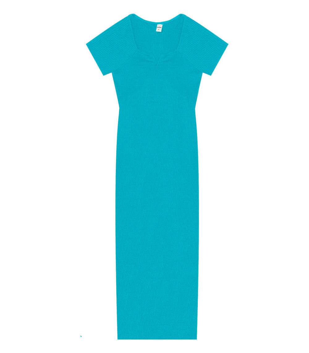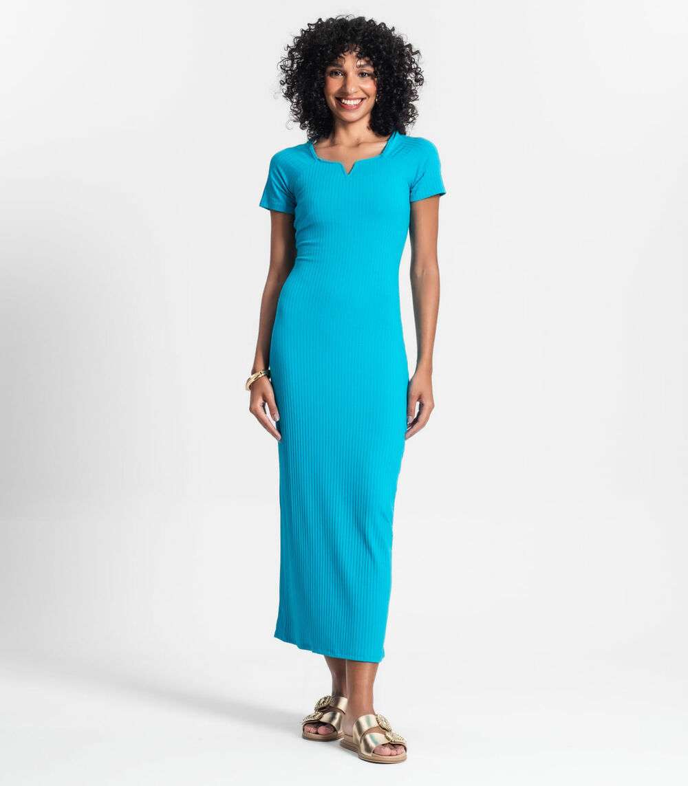 Vestido Midi Em Ribana Canelada Rovitex Azul